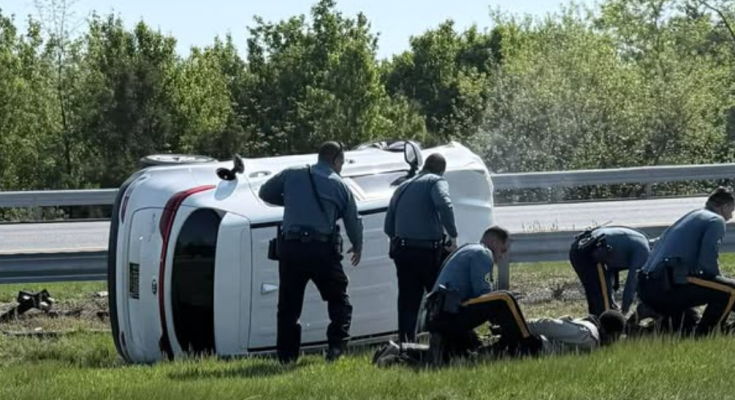 A description of the vehicle was broadcast to assisting units. A short time later, troopers located the Kia in the area of Route 1 near Middletown Odessa Road, where it was seen traveling at a high rate of speed before striking a tractor-trailer and overturning in the center median.